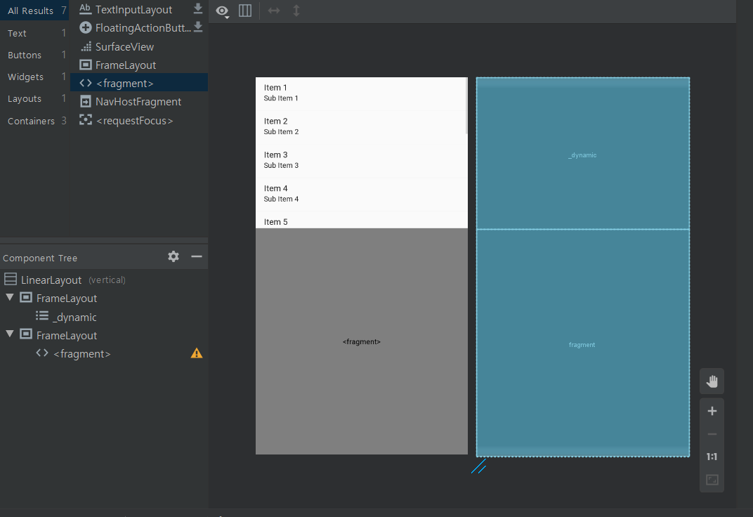 실제로 어떻게 보여질 지를 미리 볼 수 있다!마찬가지로 프래그먼트에도 적용해보자.