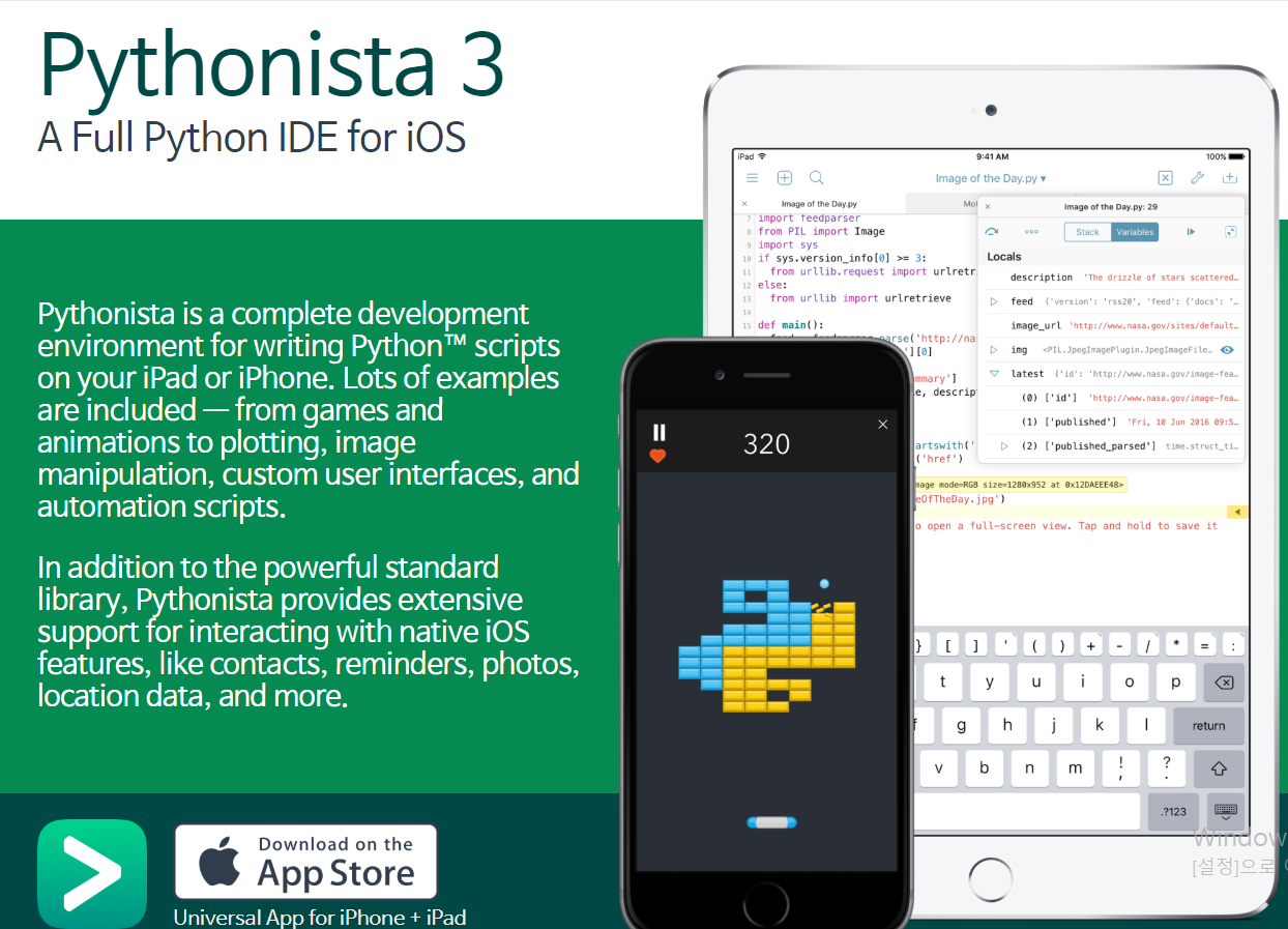 그래서 나름의 대안을 찾아보다가 Pythonista라는 어플을 발견했다.