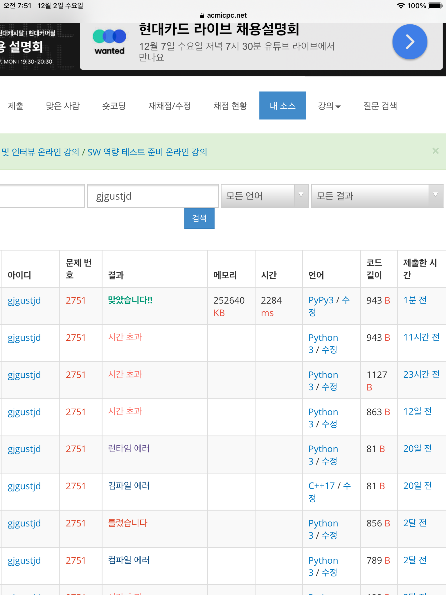 노트북 앞에 앉아서 할 시간이 없어 아이패드로 코딩하였다.