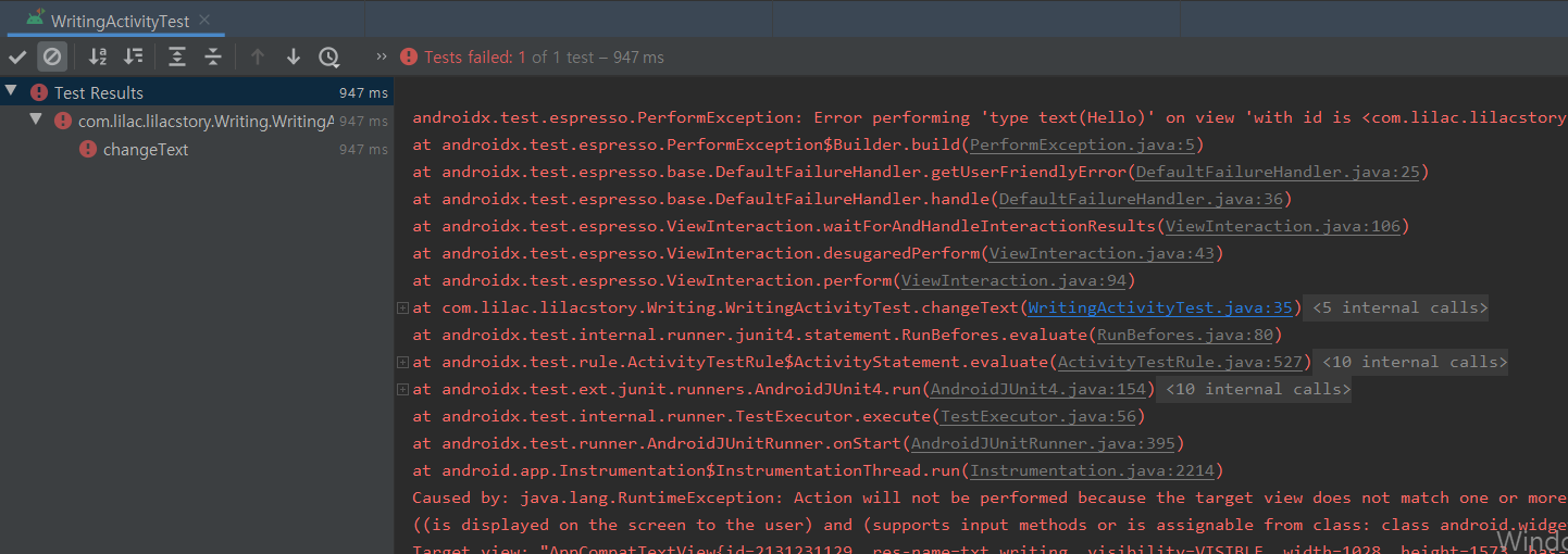 [Espresso] androidx.test.espresso.PerformException: Error performing 'type text..... 오류 해결 경험 공유TDD 2020. 11. 21. 16:58