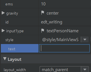 이번에 만들고 있는 텍스트 작성 프래그먼트의 레이아웃이다.