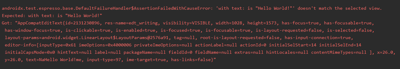 결과는 성공. 입력하려던 EditText에 Text라는 문자열이 이미 있어 초기 입력하려는 문자열과 불일치했던것...!