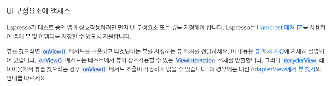 https://developer.android.com/training/testing/ui-testing/espresso-testing?hl=ko
