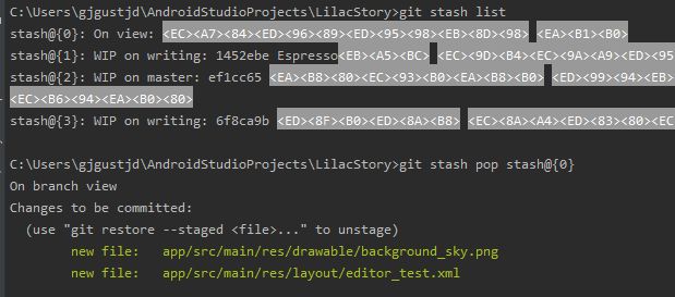 다시 stash에서 가져오면 병합하기에 쉬울 것이다.