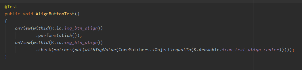그리고 어떤 버튼을 누르면 다른 Drawable이 나오는 것을 확인하는 코드를 짜려는데, 여기서 이미 Espresso의 ViewMatcher로는