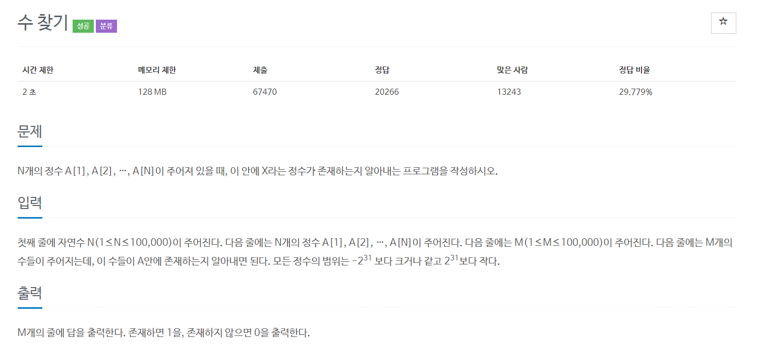 입력된 수열의 수 하나와 찾아야할 수열 중의 하나를 비교하는 과정에서,