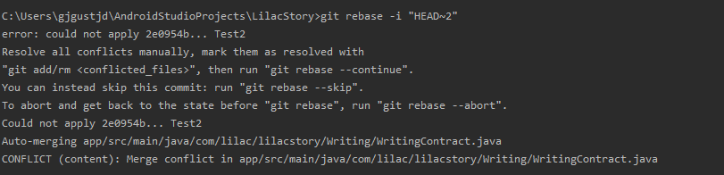 해당 충돌을 해결하고, git rebase --continue를 실행해보면,