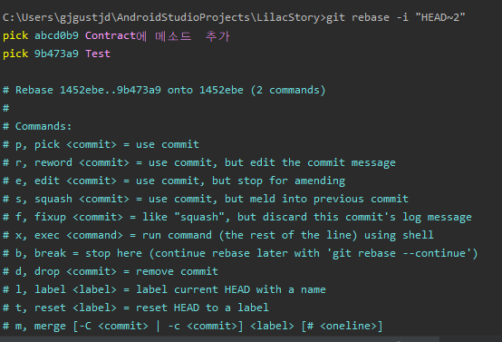 reword는 해당 커밋의 메시지를 변경할 때 사용된다.