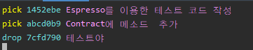 위 캡쳐화면에 pick이라고 표시된 두 개의 커밋은 현재 사용된다는 것을 의미하며,