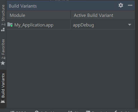 추가하고 Sync하고 나면,스튜디오 좌측 하단에 위치한 Build Variants라는 탭에서 Active Build Variant에
